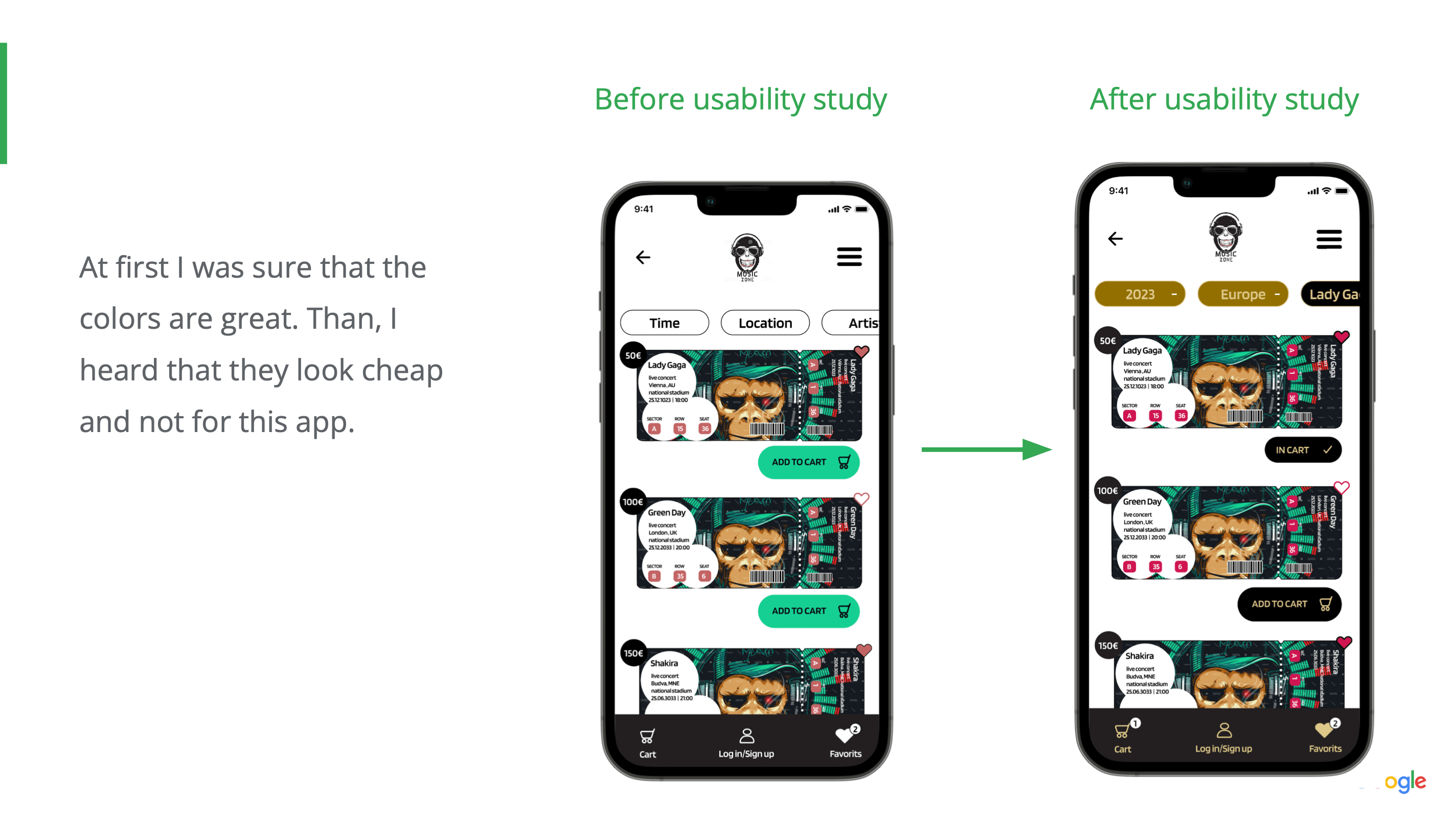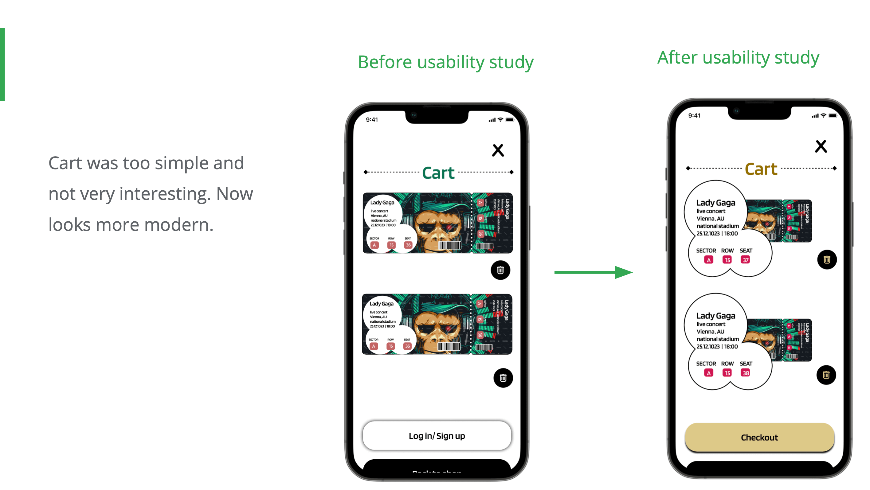 Mockups before and after usability study